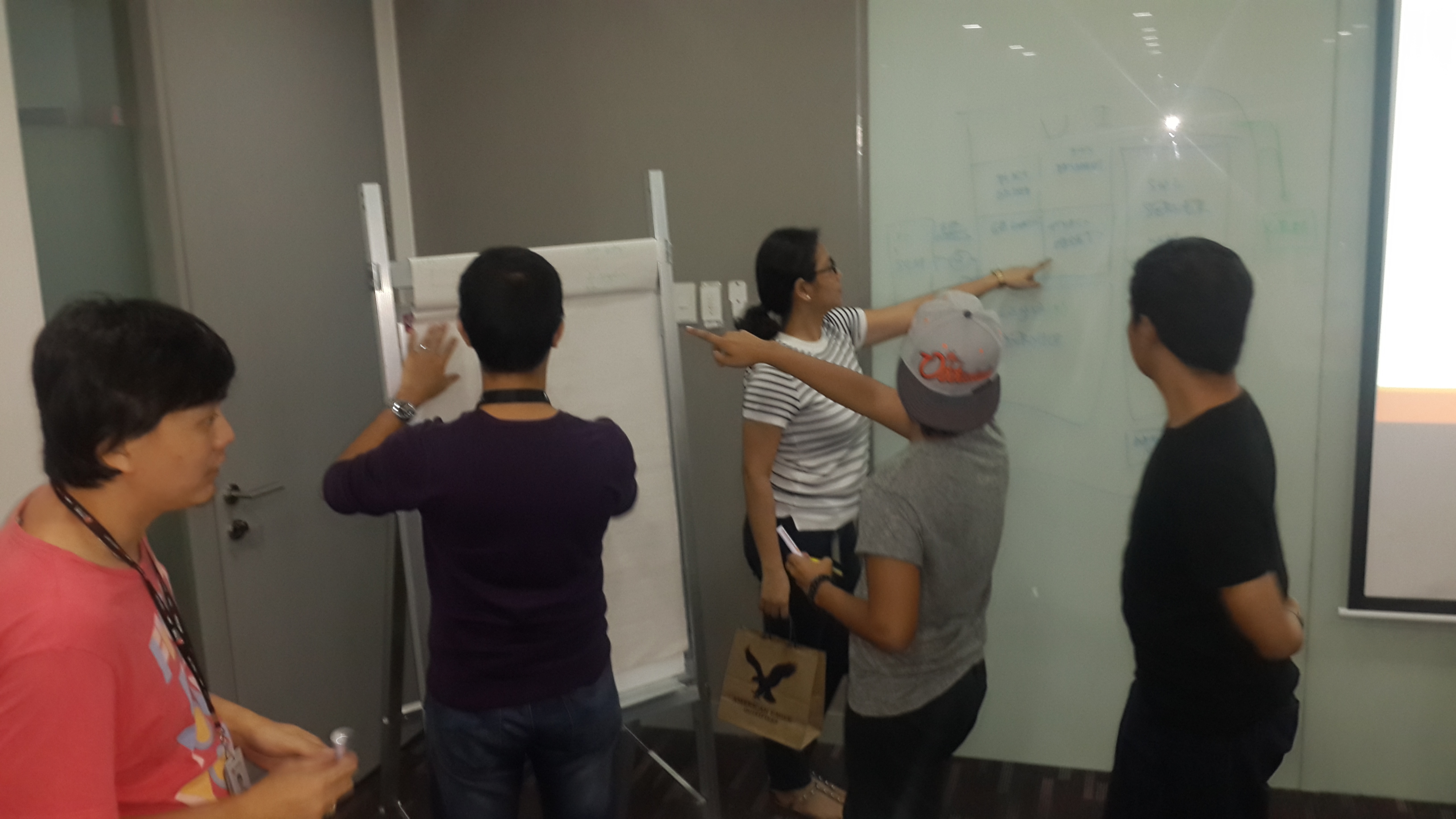 All of which are quotes from industry gurus. Armed with these points and more, I went ahead and showed them their kata. It’s basically a request-for-proposal (RFP) for an online food delivery system, and I modified it a bit to add more integrations like the company customer relationship management system and supply chain management system to simulate the constraints of a real-world systems. I divided the audience to 4 groups of 4 people, and assigned an subject-matter-expert (SME) to each group. Each group became their own companies, vying for the RFP, while each SME became their own CEO’s. I gave them their company names, which is a play on their names, like:
